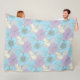 “Täck dig själv i stil med denna stora filt av fleece med ömtåliga blå och lila klöverblommor på en pastellbakgrund. Perfekt för sängar, soffar eller som en dekorativ kastfilt, erbjuder denna överdimensionerade filt värme, elegans och en mjuk, mysig känsla för användning året runt.”