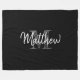 Stora svarta och vita filtar med monogram. Utformning av Personligen med namn eller efternamn. Gör din egen unika filt till honom och henne. Elegant Födelsedag eller julklapp för manar, kvinnor, par, nyfödda, brudar och brudar, familj, vänner, medarbetare osv. Mysiga tillbehör till soffa, soffa eller säng i sovrum. Finns i liten, medelstor och stor storlek.
