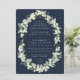 Handmålade snöbär och stjälkar av eukalyptus arrangerade i en vacker botanisk ram mot en mörk marin bakgrund. All text är helt redigerbar och de spridda prickarna på framsidan och baksidan kan raderas innan beställning om du föredrar det. Vänligen se denna kollektion i min butik för inbjudningar med alternativa formuleringar, olika färger/ former/ storlekar och för samordnade artiklar.