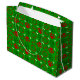 Stor glansig julklapp i grönt med rött och grönt hund tassar och vita hund.