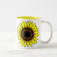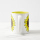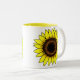 Kaffe mugg i en stor guldfärgad gult solrosa, med ett djupt chokladbrunt centrum, accentuerat med svart
