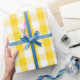 Ett slående in pappert designat med ett guld- gult- och vitginghammönster i stort format.