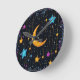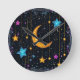 Stor halvmåne och många stjärnor rund klocka