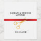 Modern och elegant etikett för vinflaskor för invigning med ett par gyllene saxar som klipper ett rött band, perfekt för företagsfester, inflyttningsfester, produktlanseringar, nya företag och liknande tillfällen.