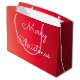 God Jul, stor papperspresentpåse i tranbärs, röd och persikofärg.