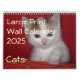 I kalender för stora utskrifter 2025 finns det många söta katter och kattungar. Kalendern har ändringsbar text på förstasidan och helgdagar och händelser i USA och Kanada läggs också till.
