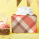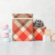 Omslagning papper i stor , retromodern plaid i korallfärgad orange och brunt med kräm och tan