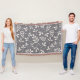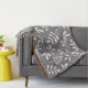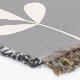 Illustrativ ytamönsterdesign av blandade lövsilhouettes i kräm på en grå färgbakgrund.