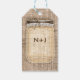 Stor murarvaska med burlap och spets lantlig bröll presentetikett