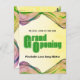 Denna topp- och bottenkanter på denna malldesign har en grön och gul rustik akvarellstil våg med ett FET sans serif-typ stort öppningsmeddelande på framsidan med detaljer på baksidan. Anpassa texten, ta bort eventuell text eller redigera med hjälp av designverktyget för att välja en typsnittsstil, storlek och färg du föredrar. Denna generiska design kan användas för alla företags stora öppning.