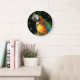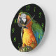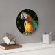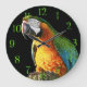 En porträtt av en stor ljusstark orange och en tealpapegoja sitta på en stump i sent ljus på eftermiddagen mot en svart bakgrund. Du kan eventuellt anpassa den här designen genom att lägga till det första, namn, meddelandet eller fotot genom att trycka på knappen Anpassa det.
