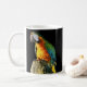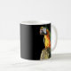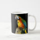 Stor orange- och krickapapegoja på en stubbe kaffemugg
