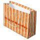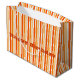 Stora designers opisexformade pappra presentsäck i en orange och vit rand-utskrift. Texten från grattis på födelsedagen kan vara en personlig till kostym vid varje särskilt tillfälle. Den vita bakgrunden rand kan ändras till vilken färg som helst.