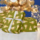 En bedårande schweizisk ostkil julgran som visar ett stort grinande leende.