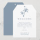 Dessa extra stora vita och dammiga blå tropiska strandbröllops välkomstpresenter är perfekta för hotellens välkomstpaket och destination bröllopspresenter, och har en enkel minimalistisk design med två palmer, och ett anpassningsbart välkomstmeddelande för dina gäster. Se samlingen för den matchande bröllopsinbjudan och fler matchande produkter.