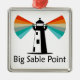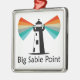 Den svarta och vita strimman, 112 fots fyr vid Ludingtons nationalpark står stolt vid Sjö Michigans kuster och förblir ett testamente för tidigare fyr.