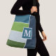 Stor Rand i blått och grönt med ditt Monogram. Ge lite lycka i ditt liv med det här djärva poppandet färg. Njut av din shopping med den här personligens korsningspåse.