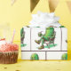 En human pickle sitter i en stol som håller en dryck och tittar något uttråkad