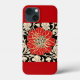 Telefonfodral i en stor, röd, kamelliablomma, i ett Art nouveau inspirerat stil, med en blommigt i beige på svart