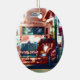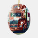 Stor röd skurkrolllastbil för lastbilsförare & julgransprydnad keramik