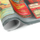En stor mängd färgburkar av vintage som visas på en hylla som används som detaljhandelsförpackning med märkesreklam och som arrangeras enligt färggrafik, livsmedel, hyllor, visning, reklam, varumärke, varumärken, företag, kanister, burkar, samlingsburkar, insamlingsbehållare, färg-kodad, färgstark, handel, konsument, redaktion, livsmedel, grönt, vintage, retro, illustration