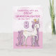 En söt rosa ponny precis som din stor sondotter står på bakbenen med siffran åtta! Gyldne detaljer är invävda i hennes man och svans. Perfekt kort för att önska din stor sondotter på hennes 8-årsdag!
