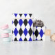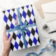 En papper designad med svart, royal blått och vitt harlequin mönster på stor storlek. Anpassa bland annat den vita bakgrunden färg.