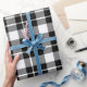 Ett slående in pappert designat med ett svartvitt plädmönster i stort format. Du kan ändra viten för en olik färg i ett lätt långt.