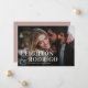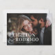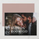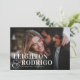Meddela din förlovning med dessa vackra, minimalistiska fullt-utfallskort som innehåller ett vågrät- eller landskapsinriktat foto med namn täckt med vita bokstäver och gått med med ett överdimensionerat dekorativt tecken. Anpassa med ditt meddelande om anpassningsbar under. Visas med "...är engagerade! Datum och detaljer att följa"