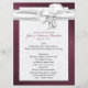 Den stora bröllopbordmenyn som göras i en rik rödbrun damast, med en vitdamast, överdrar textområde. Älskvärda diagram av tittar band och pilbåge för vit ett satäng dekorerar det bästa av menyn. Personifiera alla text för att passa din meny för bröllopmottagandet. Matcha tillgängliga bröllopprodukter.