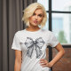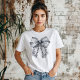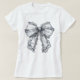 Stor vit T-shirt med satin- och spetsbåge. © Tees & Sweats på Zazzle. Den här tee har en stor vit satin- och spetsbåge på framsidan.