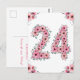 Vacker tjugofjärde födelsedag stor siffra tjugofyra dekorerad med vackra akvarell rosa blommor och grönt lövverk. Fantastisk 24-årspresent till din tjej för ett unikt och mycket speciellt vykort.