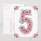 Vacker femte födelsedag stor siffra fem dekorerad med vackra akvarell rosa blommor och grönt lövverk. Stor 5-års present till din lilla flicka för ett unikt och mycket speciellt vykort.