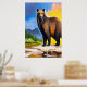 En stor brunbjörn som står utanför med en skog i bakgrunden. Det här är en AI-skapad konst.