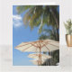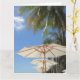 Fotografiskt kort av strandparaplyer och handflatan träd - perfekt för helgdagar, farewells & pension - anpassar fram- och invändigt meddelande. Stora storleka perfekter för kontorsfarewells.
