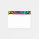 Anteckningsblocket Post-it har en svart historikdesign av stora cirklar från regndroppar och cirklar i rött, gult, lila, grönt och turkos.