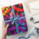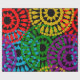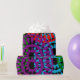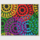 Denna papper har en svart historikdesign av stora cirklar som bildas av regndroppar och cirklar i rött, gult, lila, grönt och turkos.