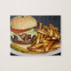 stora dubbla, halva pound burgerpommes frites och pussel