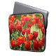 Stora fält av röda tulpaner. Röda tulpaner på en sommardag. Bilden togs i maj 2022. Poster är lämplig för inredingsdesign.