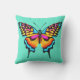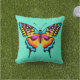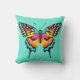 Pillow i en stor svallfjäril i ljust, primärt färg av orange, turkos och fuchsia rosa, accentuerad med svart