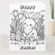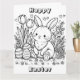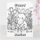 Täck det stora färgkortet Påsk. En söt Påskhare sitta i tulpanerna med Påskäggets färgkort för barn.