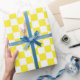 Stora gult- och vitkontroller som slår in papper presentpapper