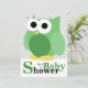 Gulliga 2 sid ugglababy showerinbjudningar med en stor illustrerad grön uggla på bekläda, och duschen specificerar på baksidaen. Andra matcha produkter som är tillgängliga på förfrågan.