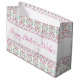 Anpassa texten från grattis på födelsedagen till kostym till vilken tillfälle som helst på denna stora papper till presentsäcken från stil i en finare mönstrad utformning på vitt med rosa och stöttaccenter, och bakgrunden kan växlas till vilken färg som helst till kostym som stil eller tillfälle.