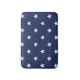 Ett klassiskt mönster av stora vita stjärnor på en marin blå bakgrund.