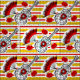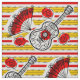 Kvismisk design som ritats i en stil med souvenirer från en spansk helgdag, en färgad guitar från järn, lacy fläkt och röd ros, på en dekorativ, strimlad bakgrund. Ett anpassade i svart, vit, röd och gyllene gult som du kan anpassa med egen text, bilder och egna idéer. En originalbild av digitala konster.