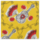 Kvismisk formgivning dragen i en stil med souvenirer från en spansk helgdag, en färgad guitar från järn, lacy fläkt och röd ros. Ett anpassade i svart, vit, röd och gyllene gult som du kan anpassa med egen text, bilder och egna idéer. En originalbild av digitala konster.