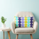 Skämt och snyggt vitt dekorativ kudde med stora handmålade ljusa vattenfärgpunkter i mörk blått, gult, lila och turkos. Designad med ett leende av ideologer:-)!
