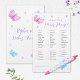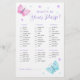 Kortet för babyduschspel är What's in you purse? Utformningen har vattenfärgsfjärilar, blommor och konfektionspunkter. Anpassa kortens baksida med namn. Matchande produkter är tillgängliga.