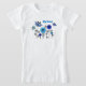 Storasystersloganskjorta med blått och vitfjärilar och blommor.